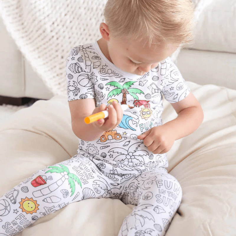 È un pigiama che si può colorare, lavare e riutilizzare all’infinito! Stimola la creatività dei bambini e rende la routine serale più divertente.
